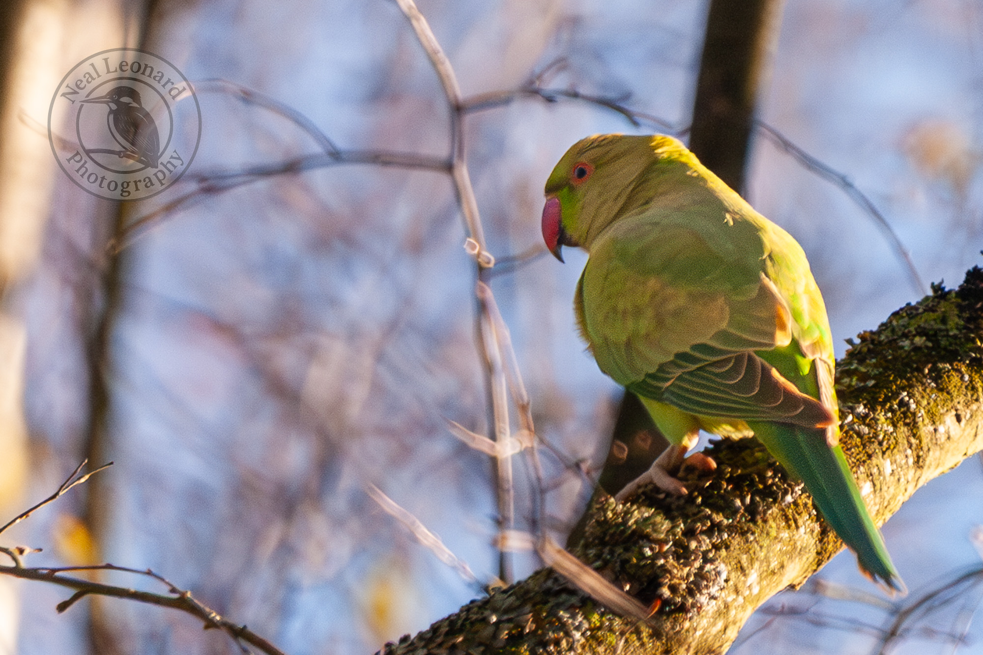 View on PicfairRing-necked Parakeet on a Winter Branch at Ladywalk