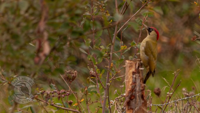 View on PicfairGreen Woodpecker on Fence Post – Rutland Waters (Picus viridis)