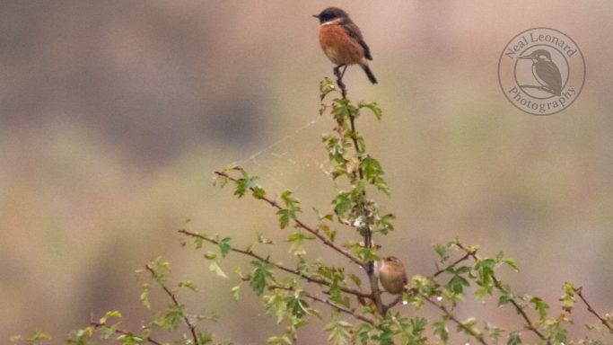 View on PicfairStonechat Pair (Saxicola rubicola) – Ladywalk Nature Reserve