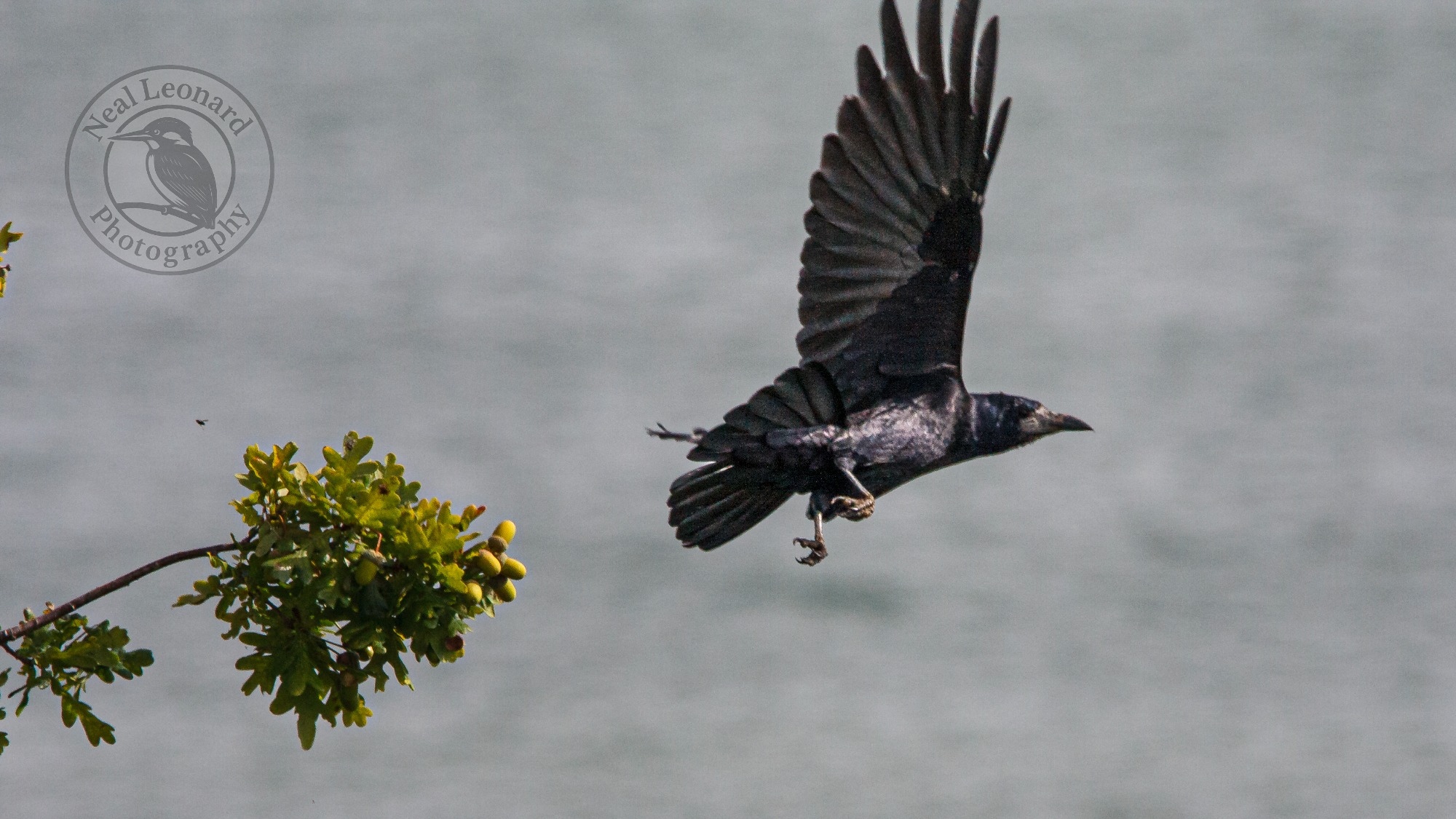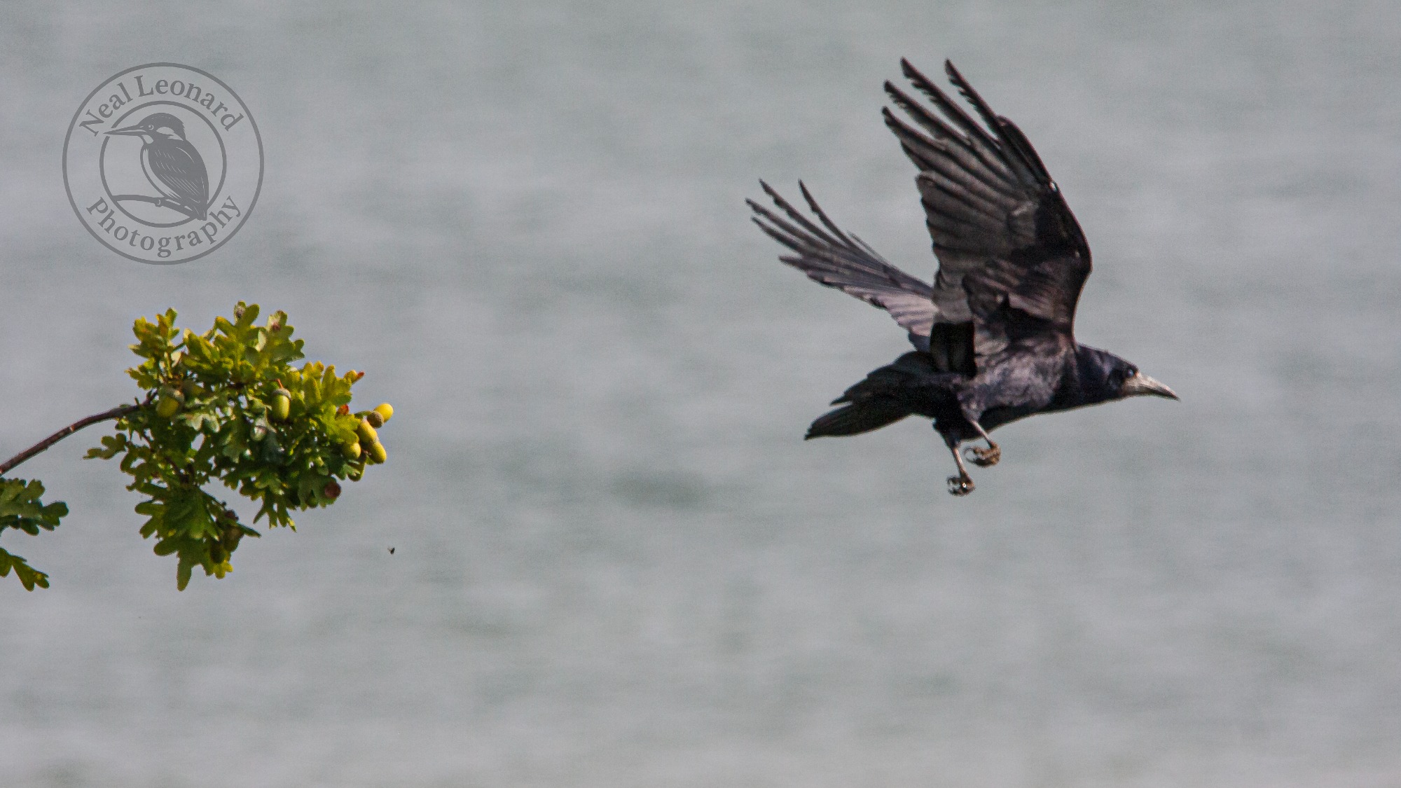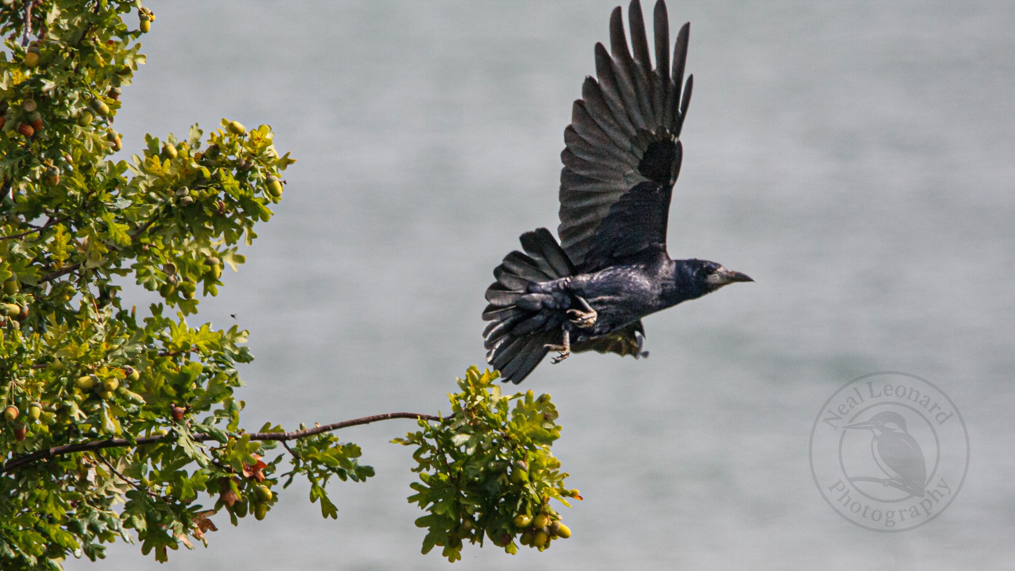 This series follows a rook (Corvus frugilegus) as it lifts from an oak branch overlooking the waters of Abberton Reservoir in Colchester. Captured in natural light, the sequence highlights the rook’s powerful wings, iridescent feathers, and distinctive pale bill as it takes to the air. Each frame shows a different stage of flight, from its initial perch to its steady departure over the water.